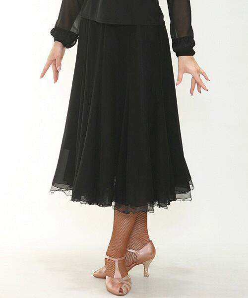 ジョーゼットを使用した8枚ハギスカート。裏地裾のオーガンジーとジョーゼットの裾にテグスを施し、ハリ感を出しました。脇ゴム・後ファスナーです。